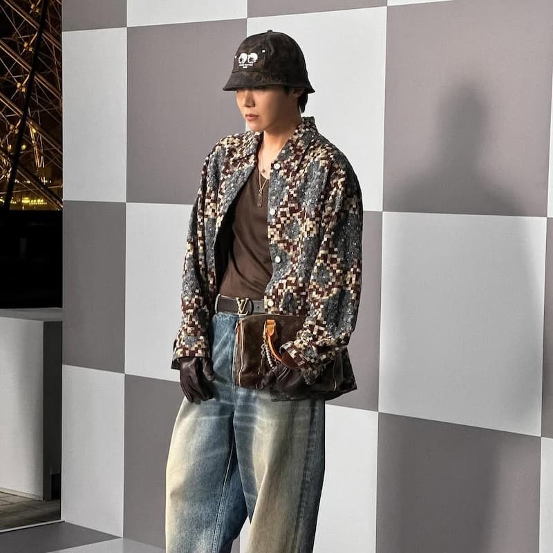 最近剛退伍的 BTS 成員 J-Hope 沒有讓 ARMY 等太久,他馬上以 Louis Vuitton 全球品牌大使的身份現身 2025 秋冬男裝大秀,穿搭方面,選擇了一頂棕色漁夫帽,搭配數位格紋襯衫與牛仔褲,整體造型簡約卻不失時尚感。此外,他還搭配了一款飾有垂墜珍珠的 LV Speedy 包,精緻的細節更為整體穿搭加分!