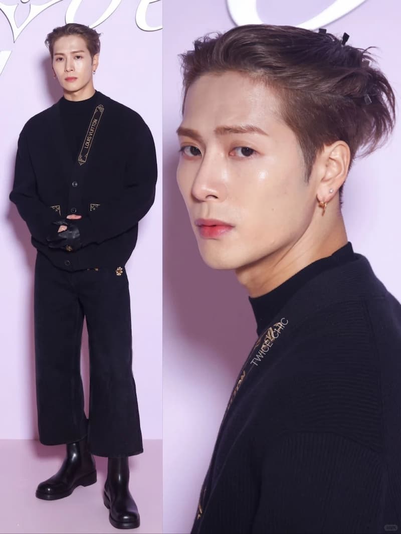 王嘉爾作為香港人氣歌手和時尚代表人物,近期也亮相於 2025 LV 秋男裝系列。他身穿 LV 針織外套,搭配黑色七分褲與黑色靴子,整體造型透露出一種前衛的黑暗風格,也展示了他的時尚敏銳觸覺與個人風格的堅持。