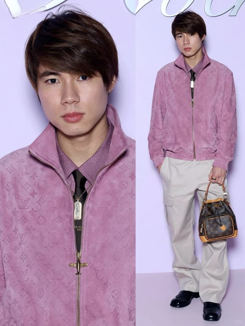 奧運滑板金牌選手堀米雄斗,被譽為「滑板王子」的他這次也出席了 2025 秋冬男裝時裝秀,他不僅在滑板領域的天賦,還擁有極佳的時尚品味!穿著 LV 的粉色外套,內搭粉色襯衫加領帶增加層次感,搭配 LV 手提包,整體造型營造出一種輕鬆又不失精緻的獨特風格。