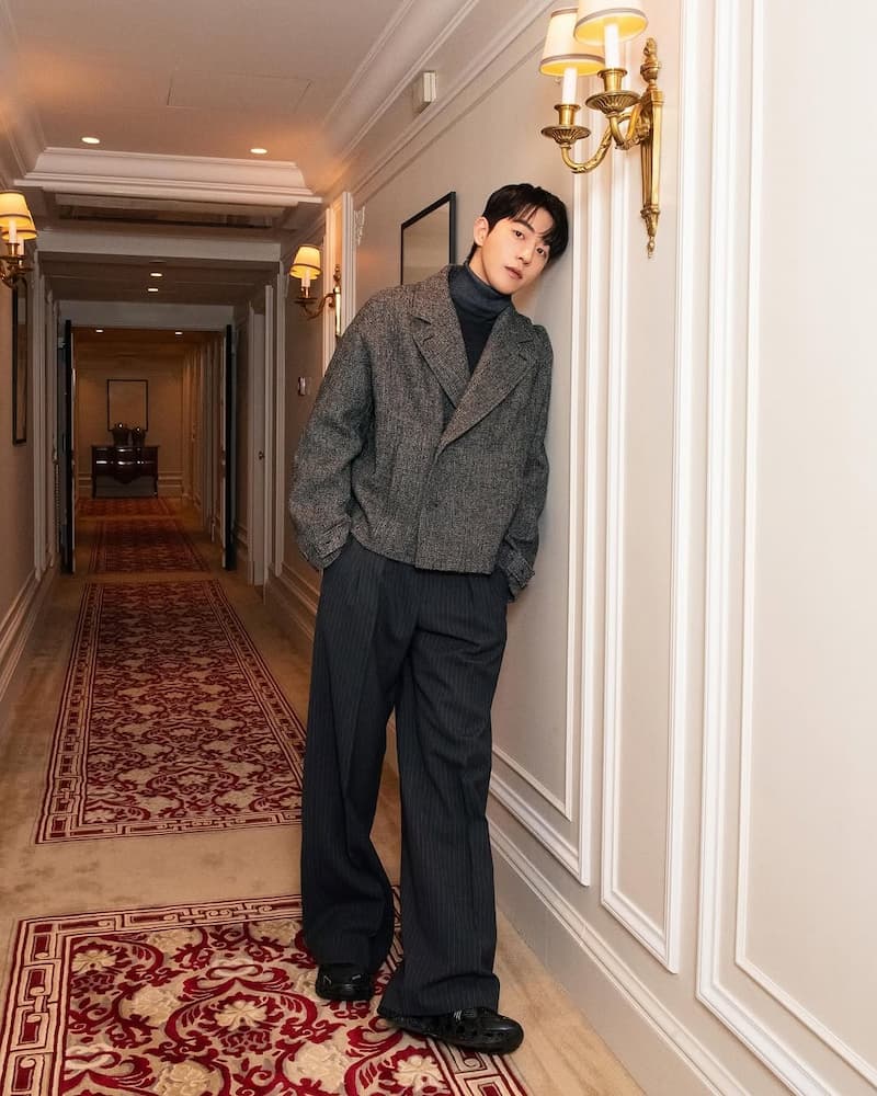 「南朋友」南柱赫退伍後也亮相於巴黎時裝秀!這次他以簡約不失質感的穿搭吸睛:短版西裝外套搭配高領內搭,下身搭配寬鬆剪裁的西裝褲,黑灰配色打造出低調又時髦的魅力,展現南柱赫獨有的帥氣風貌。