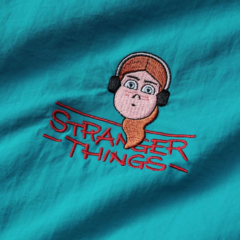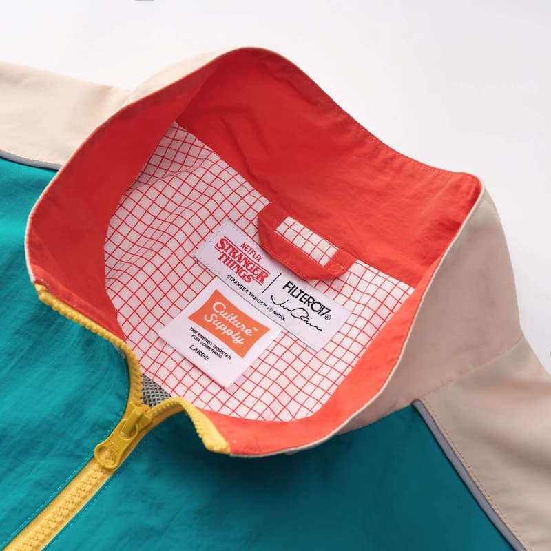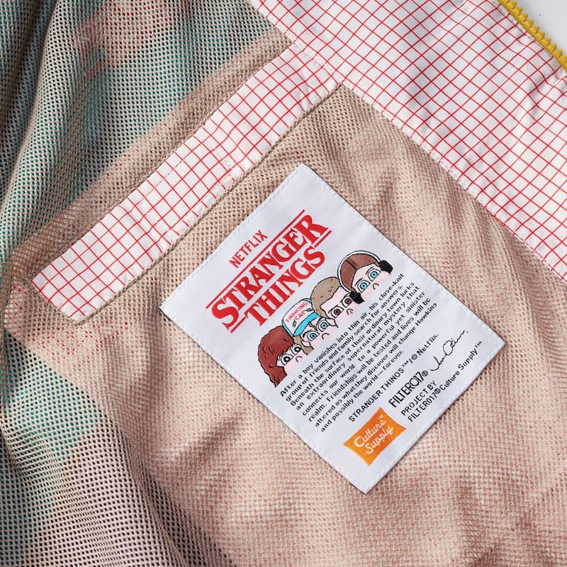 此次推出的麥克絲運動外套,靈感來自 Max 劇中的穿搭視覺,融合 80 年代流行的「運動外套」樣式,將 Max 常穿的格紋運動衣元素轉化爲外套內裡,運用元素混合的創作手法,充分展現角色鮮明的個性,成為這次活動不可或缺的重點單品。