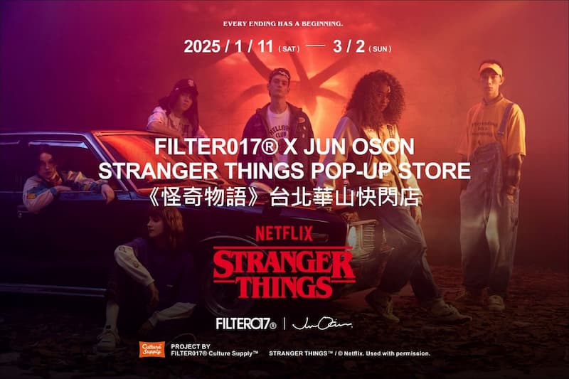 這場聯名活動將持續至 3/2 號,無論你是 FILTER017® 支持者、《怪奇物語》劇迷,亦或是 Jun Oson 藝術收藏家,皆能在此次快閃活動中,感受到誠意滿滿的品牌細節!延伸閱讀:藤原浩搶先曝光 fragment design x《鋼彈 Gundam》聯名模型!左胸閃電設計太帥啦!