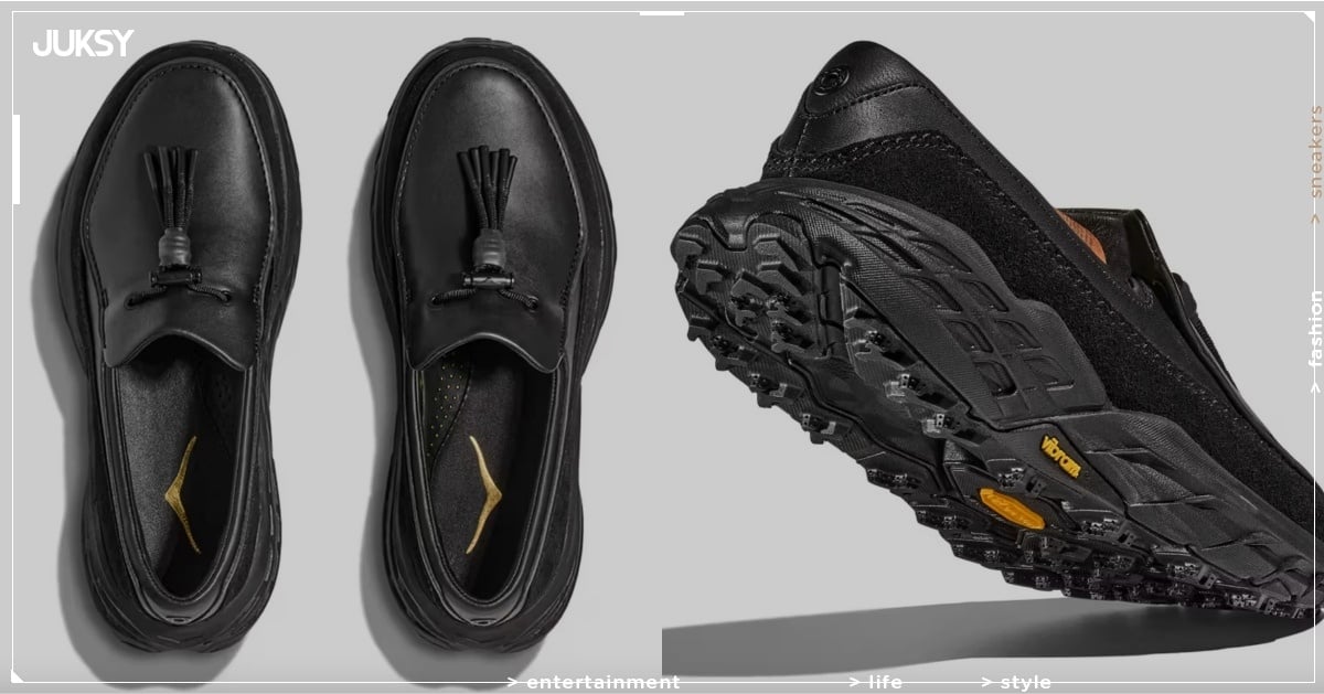這款 HOKA Speed Loafer 全鞋採用高階皮革打造,鞋面上搭配了流蘇吊飾,下方則配置了具備越野性能的 Speedgoat 5 厚實中底以及 Vibram 大底,將時尚優雅與運動機能相做結合,形成強烈的對比既視感。