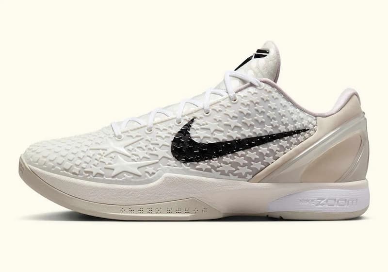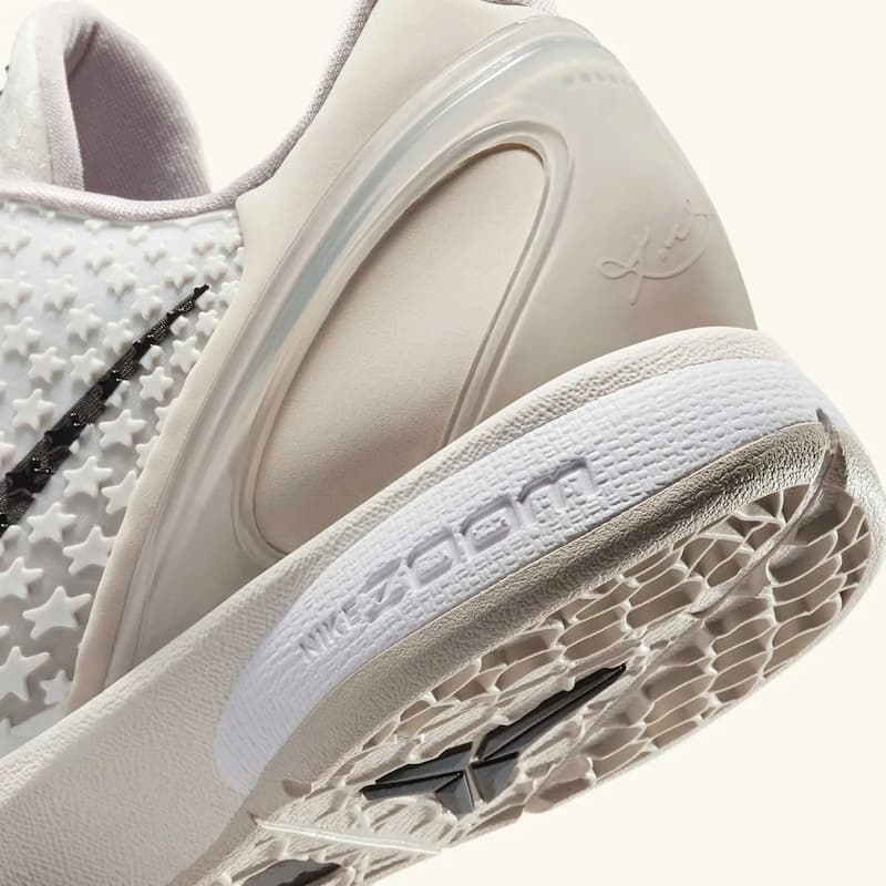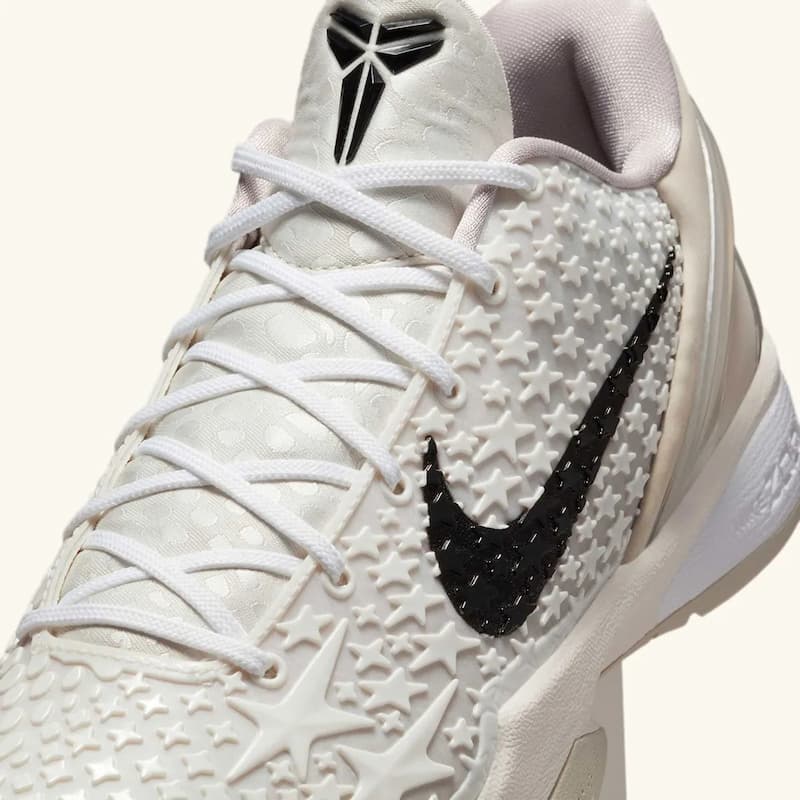Nike Kobe 6 Protro "All-Star 2.0" 承襲 2011 年問世的「All-Star」款式設計,靈感源自於 NBA 明星賽的西區紅色球衣,向當時布萊恩(Kobe Bryant)入選明星賽致敬;本次「All-Star 2.0」又稱「Sail」,以顯眼的白色作為主軸,將黑色注入 Swoosh Logo 以及鞋舌的「黑曼巴」標誌形成對比既視感,最大亮點在於其外側的鞋身紋理,從原本類似「蛇鱗」的紋路改為佈滿星星圖案,並於鞋後跟處印上 Kobe Bryant 簽名,讓整雙鞋款更加吸睛。