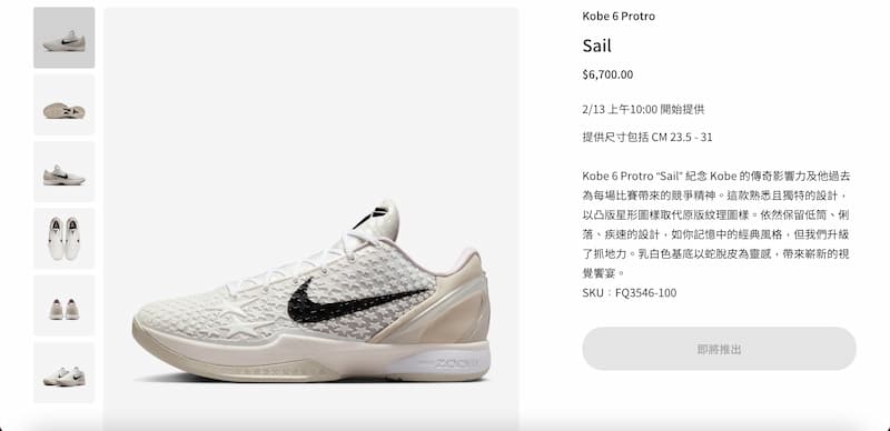 根據官方消息顯示,Nike Kobe 6 Protro "All-Star 2.0" 確定將於台灣時間 2 月 13 日登陸 Nike SNKRS(可點此查看)和指定零售商,建議售價為新台幣 6,700 元,另外目前摩曼頓、PHANTACi 也都陸續釋出投籤情報,有興趣的讀者不妨多加留意。