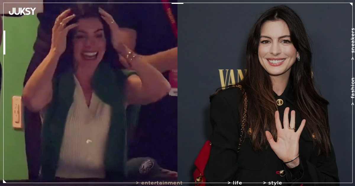 42 歲的美國女星安海瑟薇(Anne Hathaway)現身 2025 超級盃(Super Bowl 2025),短短幾秒鐘的應援畫面就在社群平台瘋傳!影片中,她身穿老鷹隊綠色外套,滿臉笑容、激動歡呼,短短 6 秒 就點燃網路熱議,網友紛紛留言:「安海瑟薇永遠站在歷史正確的一方,所以她才不會老!」還有人激動寫道:「安海瑟薇是值得你為她奮戰的女人!」該貼文更獲得超過 10 萬個讚,此外,部分粉絲還將她與 黛安娜王妃(Princess Diana)先前身穿老鷹隊外套的照片做對比,開玩笑稱她們都是「公主」,呼應安海瑟薇在 《麻雀變公主》(The Princess Diaries)中的經典角色。有粉絲更直呼:「看看安海瑟薇站在老鷹隊這邊,這就是我的日不落王國公主!」
