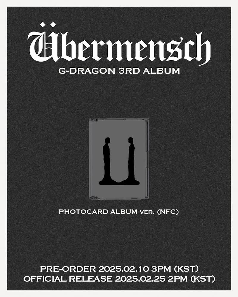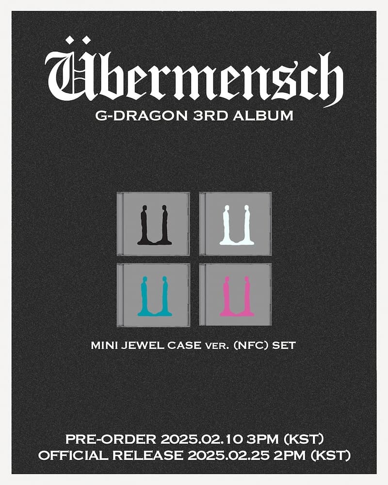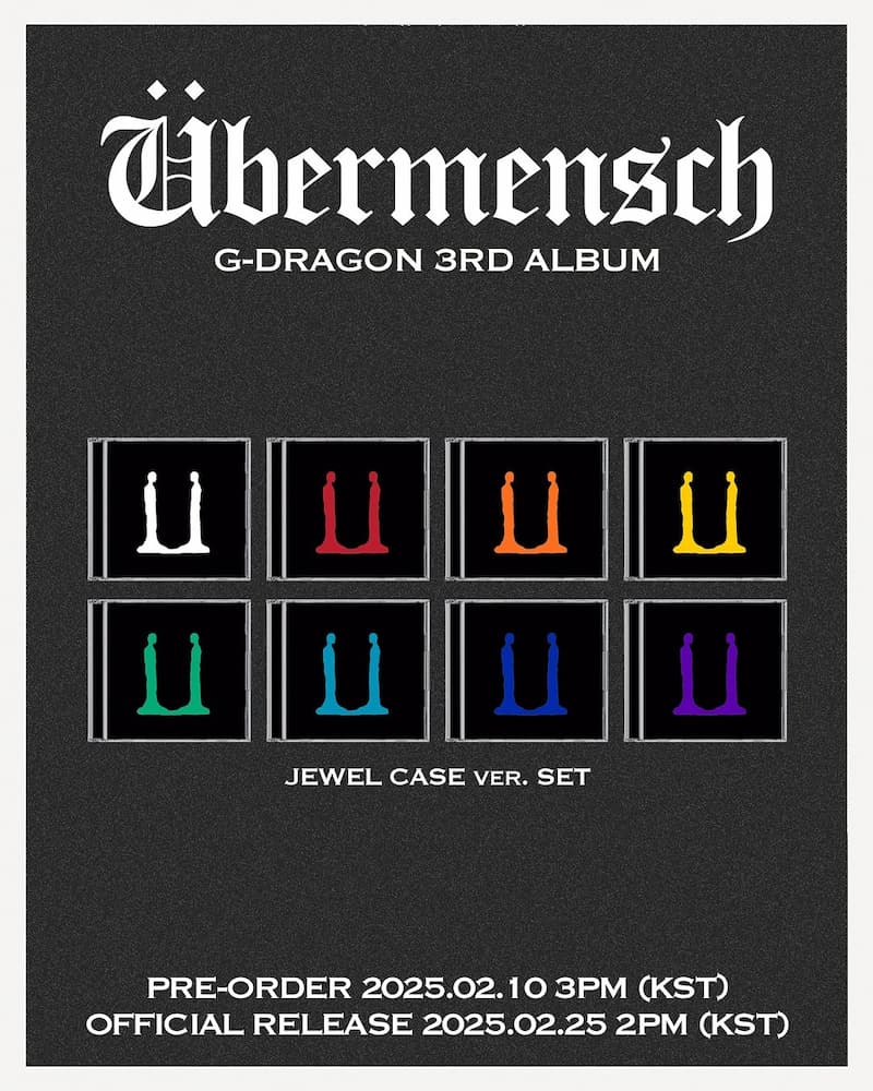 根據 GD 所屬的 Galaxy Corporation 公告,GD 的第三張個人專輯《Ubermensch》將推出五個版本、十五種封面(兩版未公開)。專輯獨特的 Ubermensch 標誌以多種顏色設計,讓粉絲充滿好奇,期待其獨特的視覺效果。所有歌曲的正式發行時間定於 2 月 25 日。這次 GD 的實體專輯在製作過程中選用了 FSC(國際森林管理理事會)認證的紙張和大豆油墨,彰顯了他對環保的重視。這不僅體現了他對音樂的熱情,也展示了他對環境保護的責任感。