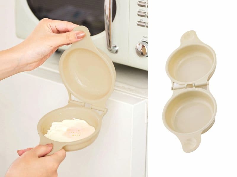這個微波爐煎蛋器超級適合在家不能開伙的租屋族,將生蛋打入這個模具,再加入一茶匙的水,再在蛋黃上戳幾個孔,再放入微波爐 700W、30 秒,熟度剛剛好的荷包蛋就完成了!