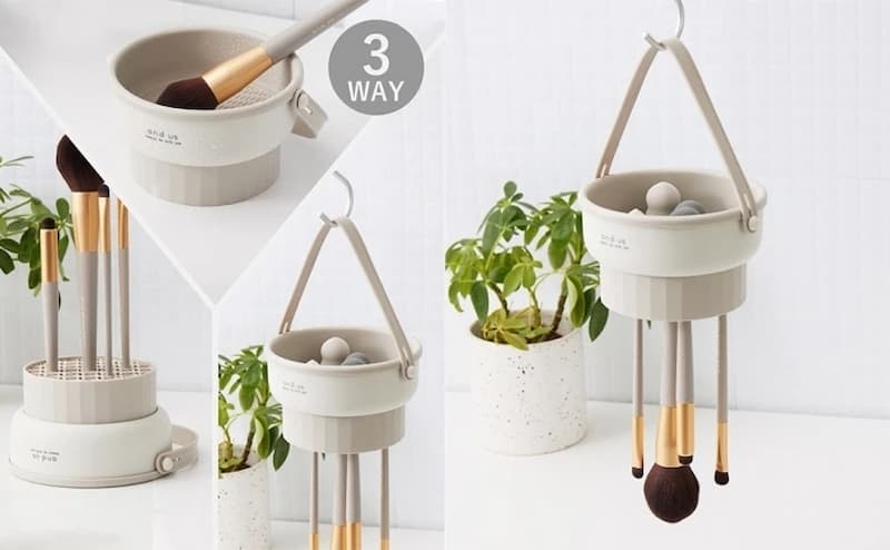 這個三用的化妝刷清潔器 CP 值非常高,可以收納、清潔、晾乾,底盤有凹凸不停的紋理設計,所以加入清潔劑就可以在上面清潔刷子,洗完刷子之後還可以輕鬆插在底座晾乾,女孩們必買!