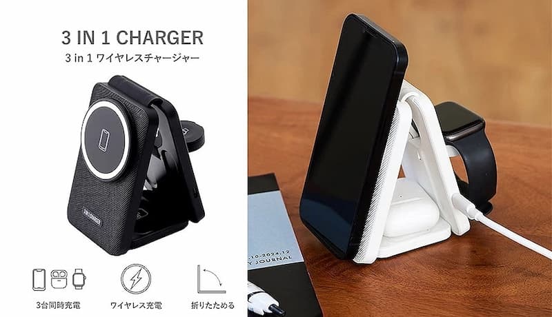 這款三合一充電器體積很小,但是可以同時充電手機、Airpods、Applw Watch,磁吸面板可以讓裝置無線充電,可以一次充三個裝置,也不會有一堆電線的問題,出外旅遊帶一個就很方便!