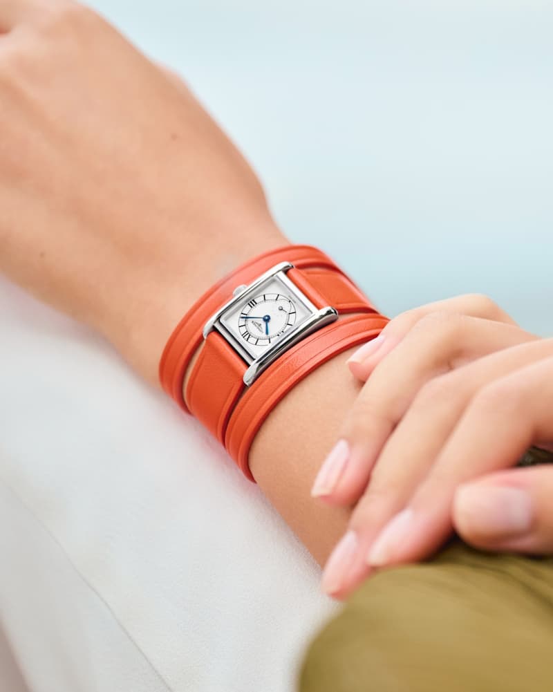 另⼀特點則在於可⾃由替換的快拆錶帶設計,一次獻上黑色、焦糖色、粉色、橘色、紅色以及土耳其藍共 6 色的多重選擇,注入自由、奔放與自信,用繽紛的色系,讓妳可以依據每⽇⼼情輕鬆搭配,從容且優雅地面對各式場合的穿搭時尚,展現自我風采及個人品味。
