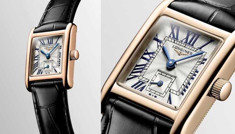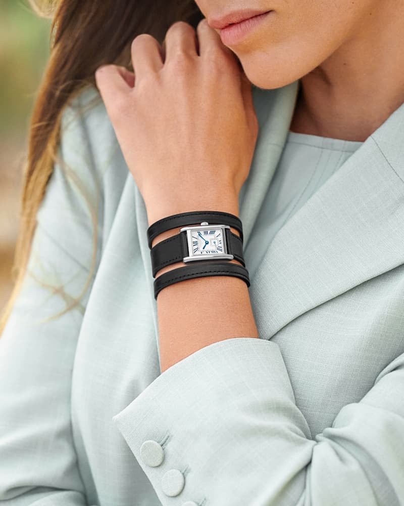 MINI DOLCEVITA 腕錶以 21.50 X 29.00 毫⽶錶殼精緻呈現,擁有俐落的矩形輪廓,搭配上⿊⾊鱷⿂⽪⾰錶帶,柔軟地貼合肌膚,兼具輕盈與耐用性。隨著手腕的每個微小動作,自然地環繞、包覆,就要給妳最貼心的陪伴感!不僅如此,那細膩紋理更宛如時光的刻痕,映襯出雋永韻味,每分每秒都在腕間散發著溫潤光澤,低調提升整體造型質感。