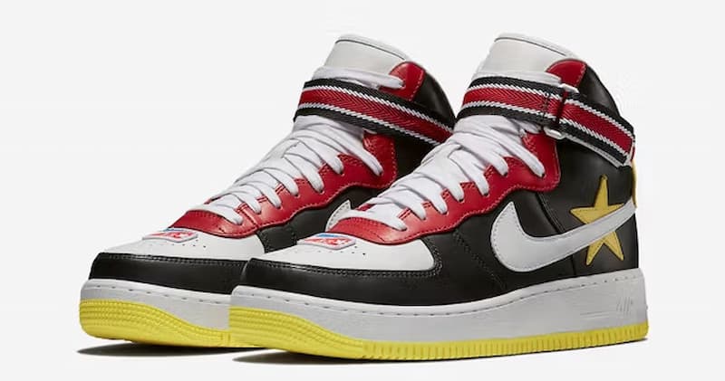 2018 年雙方二度聯手!Tisci 以 NBA 為靈感推出 Nike Air Force 1 High RT All-Star 中筒籃球鞋。鞋側巨型星星刺繡、踝部束帶設計,搭配向 NBA 標誌致敬的客製化圖騰,將街頭時尚和優雅風格完美地融合!