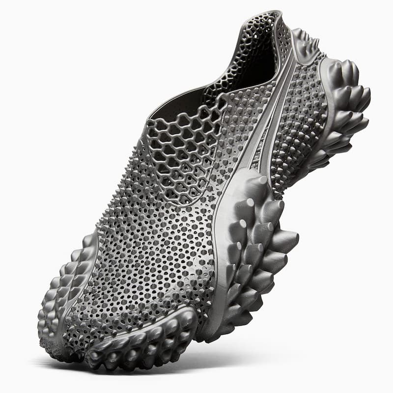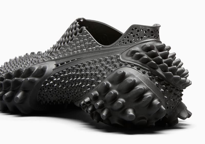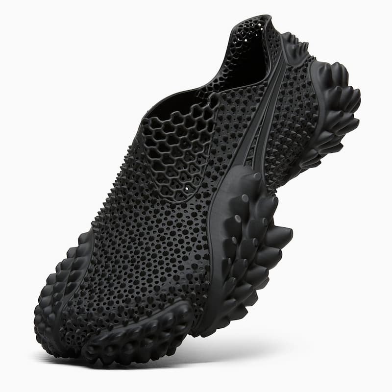 A$AP Rocky x PUMA Mostro 3D 最初以紅黑和黑綠兩款漸層配色首度現身,後續陸續推出如迷彩、螢光綠黑、湖水藍等鮮豔配色。這回新出的兩款色調款式則以全黑及全銀的單一色系為主軸,注入透過 3D 列印技術打造的鞋身尖刺設計。