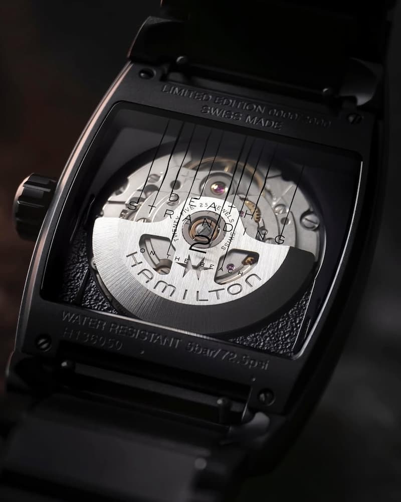 這款腕錶搭載 Hamilton 廣受好評的 H-10 自動上鏈機芯,也就是品牌版本的 Powermatic 80。這枚機芯以高精度與長動力儲存聞名,廣泛應用於 Hamilton 的多款熱門錶款中,例如 Khaki Field Automatic。選擇這枚機芯不僅展現了 Hamilton 對品質的堅持,更讓人聯想到遊戲中主角 Sam Porter Bridges 在末日世界中依然堅韌不拔的精神。