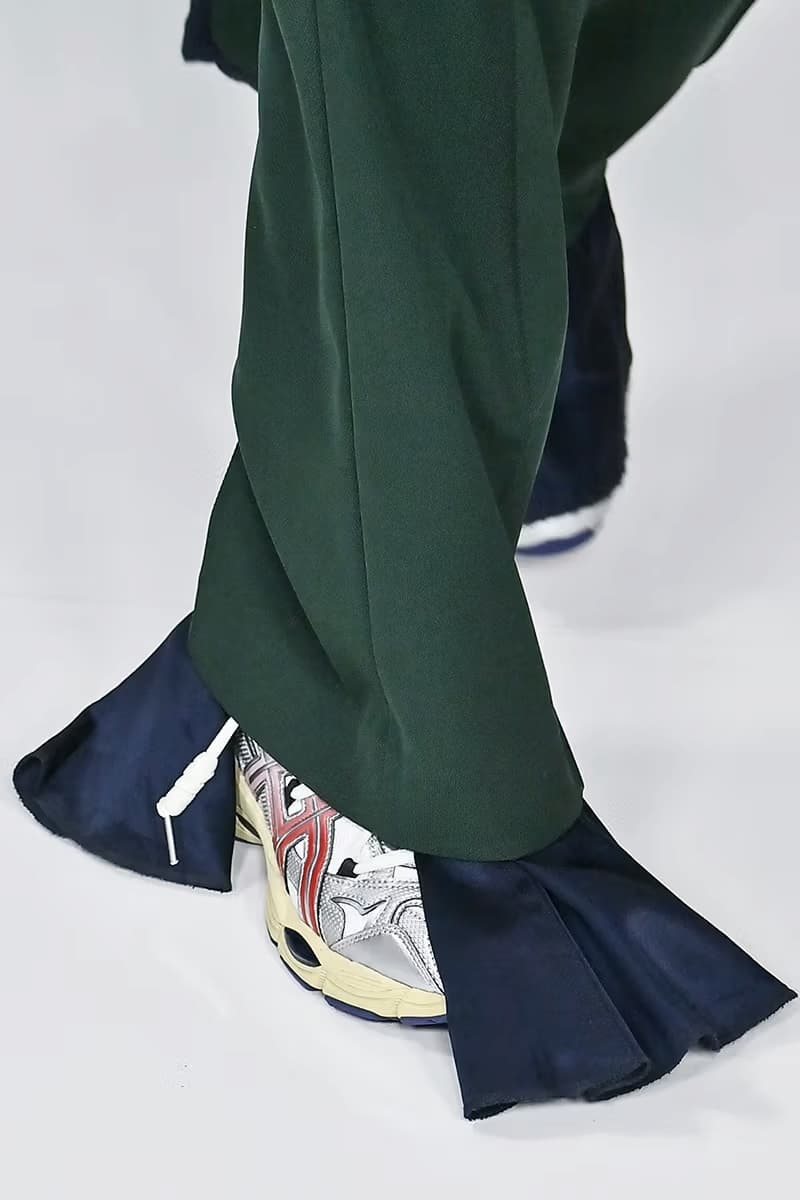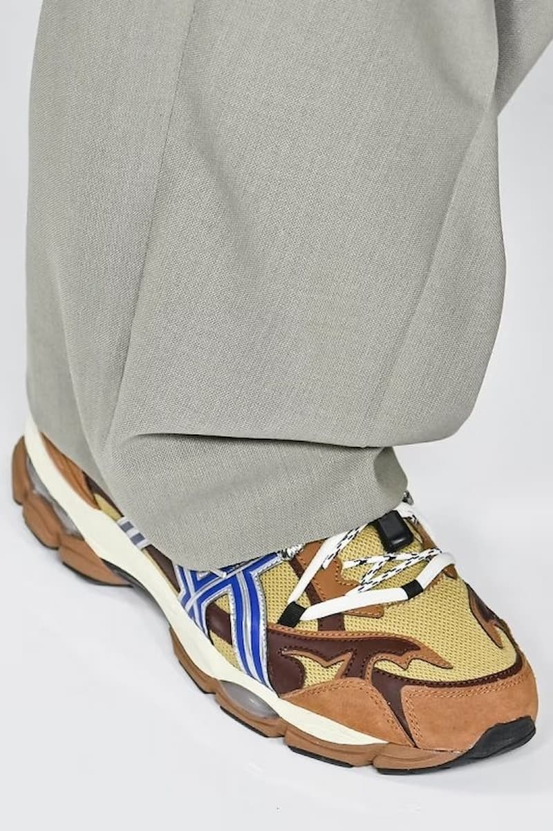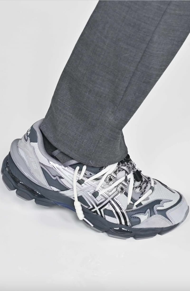 本次 TOGA 2025 秋冬系列以「FORMAL, INFORMAL, ANTI-FORMAL」作為主要理念,並攜手 ASICS 展開跨界合作,這亦是雙方的首度聯名。鞋款以 ASICS GEL-NYC 作為基礎,將牛仔靴常見的裝飾元素注入鞋身,包括銀色綴飾、針腳...等等,並置入了雙重鞋帶系統,讓一般的白色粗鞋帶與帶有圖案的細鞋帶互相交織;當中還可看見不少 TOGA 的元素,像是前側鞋眼附近融入了其標誌性的圓球形設計,周圍則有些許的金屬配件,為鞋款增添更多層次感的同時,也顛覆了以往我們對於運動鞋款的美學。