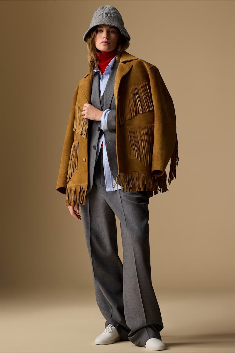 外套是本系列的核心要素。奢華的皮革與麂皮、優雅的燈心絨,以及細緻的羊毛與羊絨材質,打造多種剪裁輪廓——標誌性的駝色 Polo 大衣、風衣、車衣大衣與海軍大衣,呈現完美的中性風格。經典的飛行員夾克以背心款式重新演繹,而流蘇夾克則以深色麂皮嶄新登場。此外,品牌經典的麻花針織,以全新的飛行員夾克廓形呈現,並推出美麗的中性色調。此外,本季亦首次推出羊絨漁夫帽與手套款式。