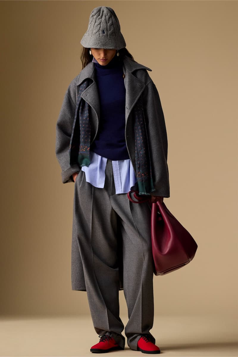 鞋履設計則專注於滿足 Polo 女性全天候的穿搭需求。此次秋季系列包含受拳擊與運動鞋啟發的運動款式、摩托車風格靴款、絲絨與豹紋瑪莉珍鞋,以及選用美國原皮手工縫製的駕駛鞋。