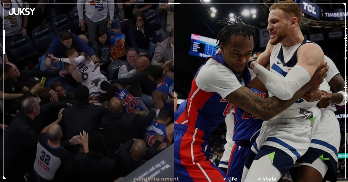 NBA 大場面又出現!今日明尼蘇達灰狼在主場迎戰底特律活塞,灰狼隊球員里德(Naz Reid)與活塞新秀霍蘭德二世(Ron Holland II)發生衝突,迪文琴佐(Donte DiVincenzo)趕來替隊友出頭,最終竟演變成多人大亂鬥,一共有 7 人被趕出場。