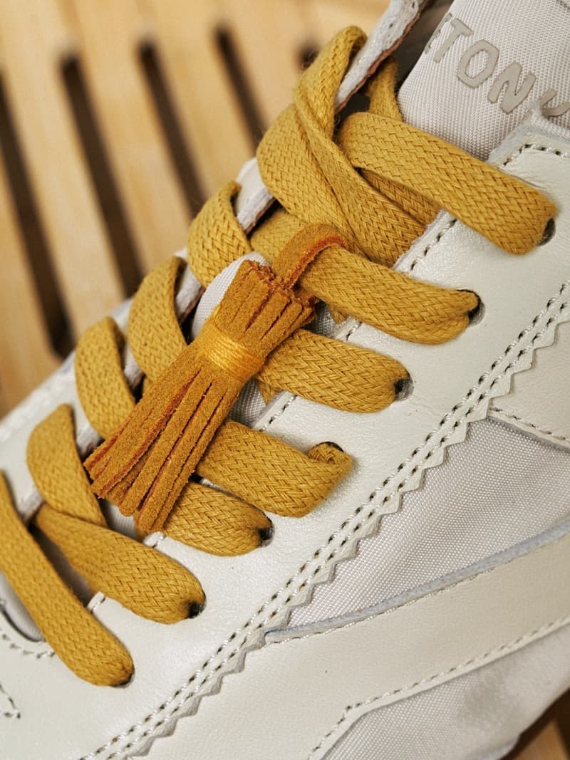 看到細節元素層面,首先位於鞋墊上特殊圖案設計,不僅標明瞭雙方品牌的聯名身份,也同時突出本次「小籠包」設計的主題。除此之外,MINNETONKA 也為該鞋款配備了三雙鞋帶,其中紅、白撞色則是為了更好的匹配日常穿著中活力和低調的不同風格,而薑黃色鞋帶的設計則源自於食材薑絲,配合流蘇吊穗創造更多藝術靈動風格。