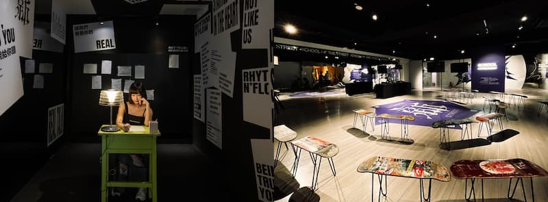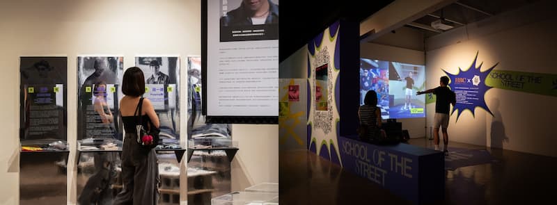 本區聚焦 23 位活躍於街舞、饒舌、塗鴉、DJ、滑板的街頭 OG,一踏進展場,就能看到街訪界最強「哈哈台」專訪影片,帶你認識他們最真實的一面。沿著象徵街頭路線的「浪板」裝置進場,像走進城市巷弄,欣賞塗鴉藝術家的現場噴畫作品。還有 DJ 與 Rapper 的展區加入吸音棉,瞬間有進入錄音室的 vibe!舞者區用鏡面打造排練空間,滑板區更展出已磨損到極致的滑板。