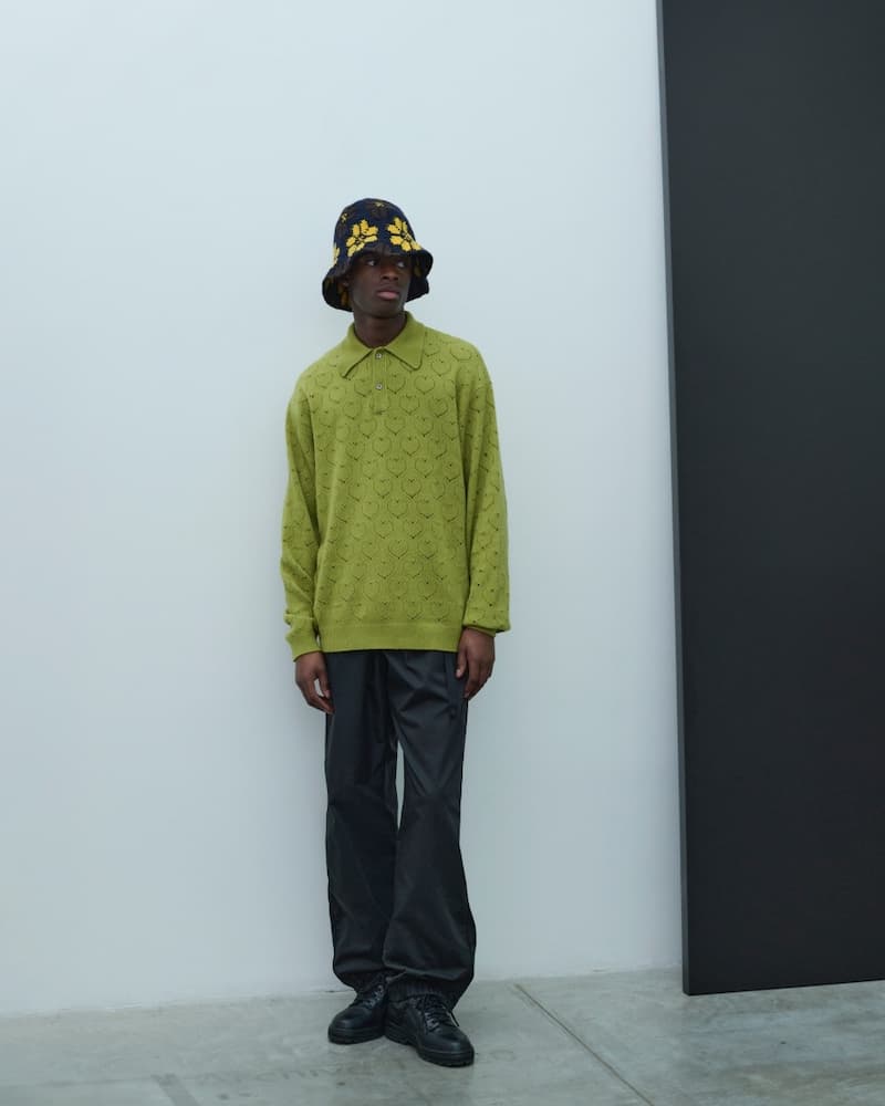 系列涵蓋多樣單品,包括以經典法式工裝外套為靈感的丹寧夾克,其中一款更以滿版花卉刺繡點綴,將品牌標誌性的美學語彙與實用細節結合。寬鬆剪裁的棉質、絲質襯衫,以花卉印花或定製豹紋 Viyella 面料呈現。多款 T-shirt 延續本季精緻的圖像語彙,並以全新手法再詮釋 vowels 字標。