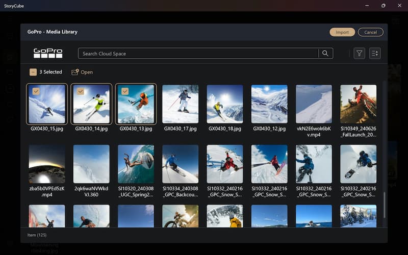 華碩獨家AI應用程式——StoryCube,是全球首款同時支援GoPro雲端與360°影片的Windows應用程式,可直接預覽與下載雲端內容,並一鍵匯入Adobe Premiere Pro 或 CapCut編輯後製。StoryCube 亦內建AI場景分類(含照片、影片與 360° MP4/MOV 格式),能自動辨識自行車、衝浪、滑雪等熱門活動,並依時間、GPS或AI搜尋快速整理素材,大幅簡化檔案管理。