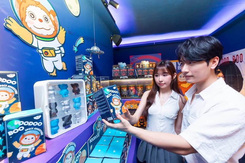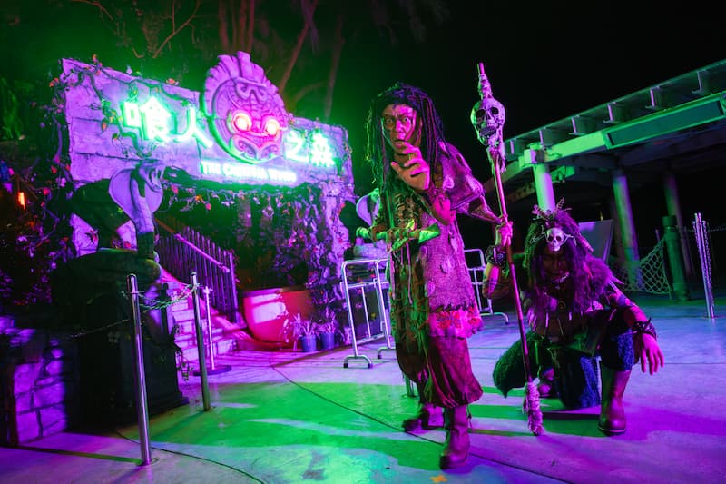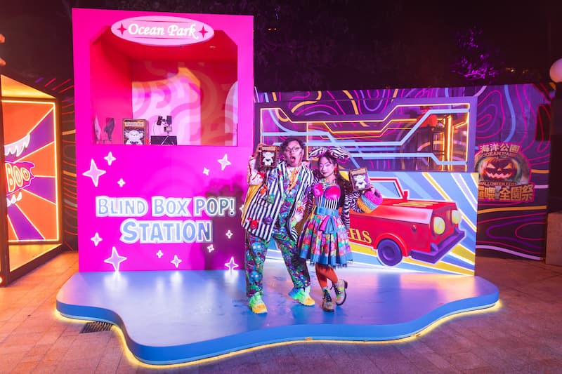 來到香港海洋公園的遊客,將展開一場膽量全開的驚悚探索之旅,挑戰六大恐怖鬼屋,準備迎接滿滿的尖叫與心跳加速!第一站是「AEON 信用卡呈獻:怨靈盲盒」,傳說那些被遺棄的盲盒玩具全都變成了充滿怨氣的頑魂,誓要對人類展開復仇!在正式探險前,還能抽出一組神秘盲盒,運氣好的人甚至能帶著 Voodoo Boo 盲盒公仔一起闖關,增添驚嚇指數~緊接著,你將走進一個詭異又離奇的玩具世界,這裡有染血的眼球、牙齒與人體殘肢散落在盲盒製作工房中,等著你一步步「開箱」面對童年夢魘的黑暗版本!