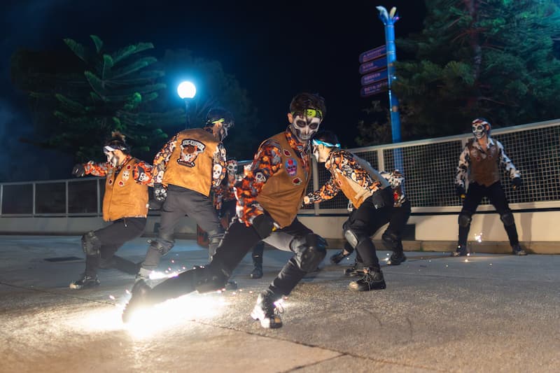 大家亦可與「亡靈樂隊」盡情共舞、在「骷髏極樂天團」享受重金屬音樂,或於「亡靈狂歡慶典」一同歡迎各路亡靈聚集,展開一場派對狂歡。最後還有身懷速滑絕技的「亡靈火花怪客」,以超乎想像的高難度動作,帶來驚險刺激的表演!
