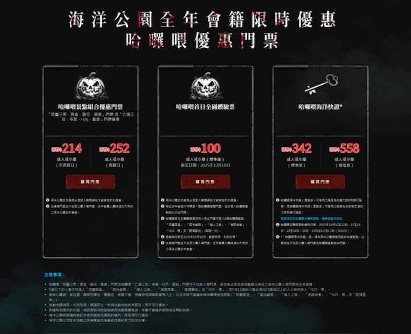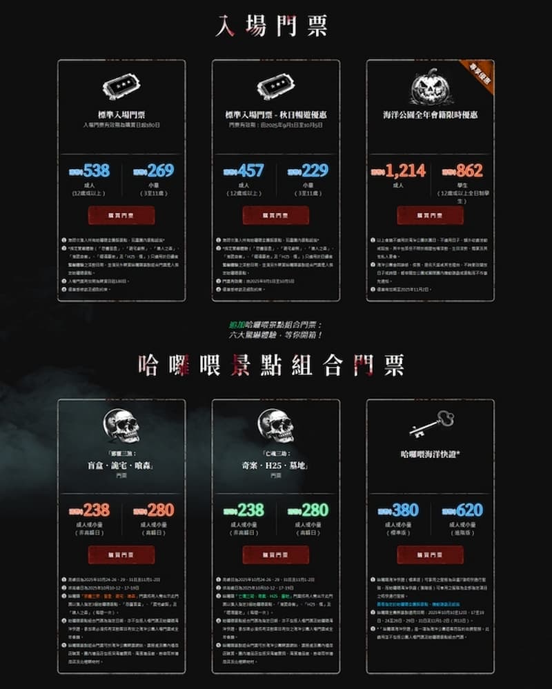 部分日期價格略有不同,搭配哈囉喂海洋快證還能更快速體驗驚嚇景點!