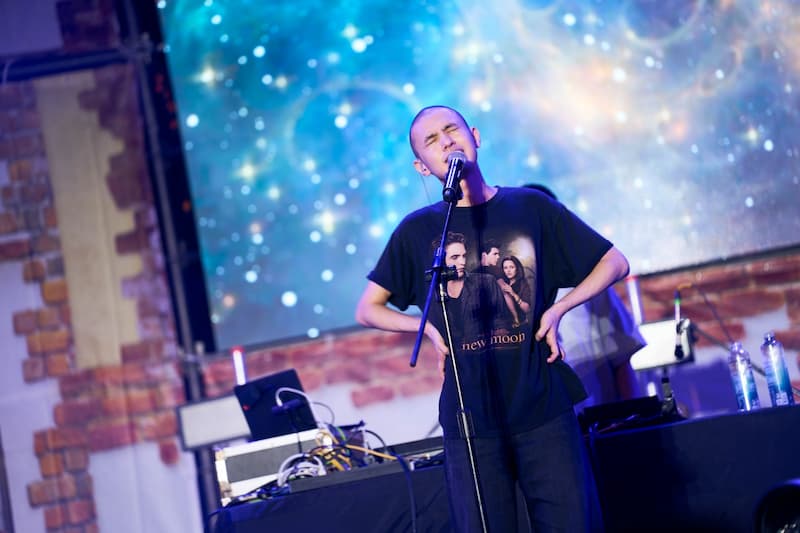 首日也祭出兩組不同風貌的嘻哈男聲輪番登場,另一位則是來自日本的嘻哈才子 KID FRESINO,身穿《暮光之城》電影 T-Shirt 站上秋OUT舞台,直接大秀驚人饒舌才華,吸引不少台灣音樂人一睹他的現場實力,演出時段恰逢接近黃昏時刻,夕陽西下把公館水岸廣場染得通紅,也讓 KID FRESINO 大讚「在這邊演出太浪漫」。