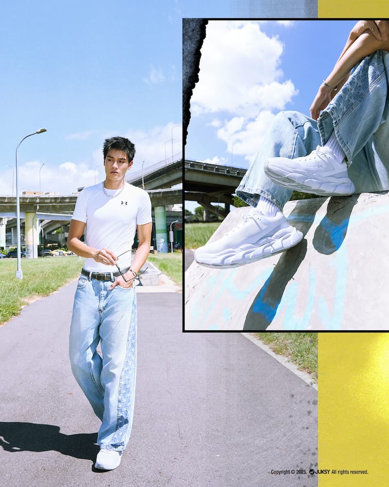 在過去,「運動鞋」被侷限在功能,「潮鞋」則象徵態度,但 UA HALO 打破這個界線,它讓你不必在性能與造型之間二選一,以科技結構與流線設計為骨幹,將街頭感比例調整到恰到好處,讓你從健身房走到街角咖啡店、從下班後的聚會到週末旅行,都能自然而然地銜接每一種場景,J 編給你一點穿搭靈感,這次搭配選擇比較大膽有造型感的牛仔褲,把緊身上衣紮進褲子,利用上窄下寬的方式讓整體的運動風格俐落又有街頭感,再戴上項鍊當配件,輕鬆在機能與街頭之間自由切換,超加分!