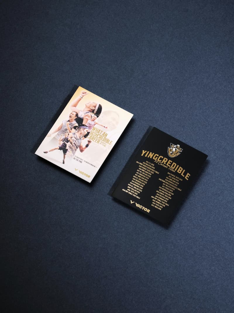 以典雅黑金為外盒設計,內襯以金色植絨襯托戰拍的尊榮質感。隨盒附上「戴資穎典藏球員卡」乙張,外盒鐫刻全球限量的專屬流水編號,其中更有 50 組戴資穎親筆簽名版隨機出貨。