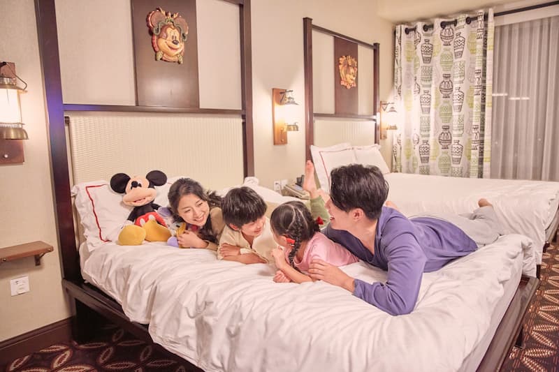 當晚回到迪士尼酒店,打開房門的那一刻真的會有種「小孩才懂」的興奮感。整個房間被節日氣氛包圍,床上放著限定的節慶抱枕、角落還藏著精緻的小裝飾,連燈光都調得剛剛好,溫暖又帶點夢幻氛圍。桌上那份專屬開箱禮更是驚喜感爆棚,窗外還能看到樂園的夜色閃爍,整個畫面像電影一樣真實又不真實,分分鐘都是假期模式。就連酒店大廳都細節滿滿,從聖誕樹到藝術裝置,每個角度都超好拍,隨手一張都能變成高質感大片,那種被迪士尼式浪漫包圍的感覺,很難用語言形容,只能說一住就會上癮!