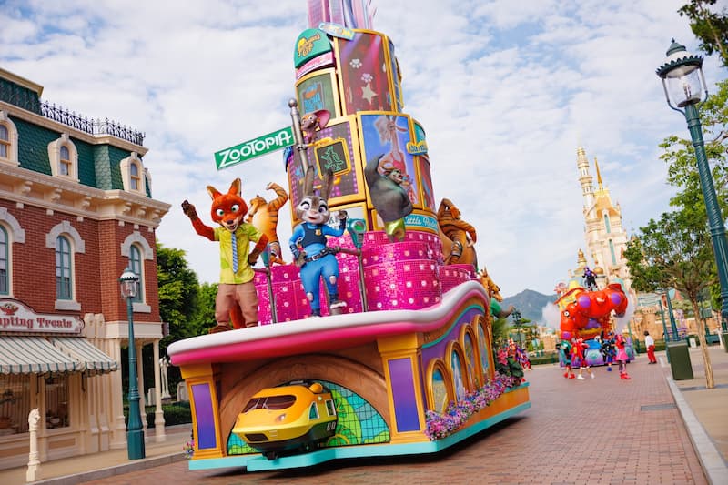 接著就是大家最期待的《迪士尼好友巡遊派對》,J 編原本以為自己看過很多遊行,想來大多也就是如此這般。但這次完全刷新三觀!能一次看到這麼多花車和迪士尼好友,而且還是近距離感受,整個興奮值直接爆表,每一分每一秒都根本沒空眨眼,那種熱血感和現場氛圍,是影片或照片完全無法複製的,只有身處其中,才會懂得什麼叫「迪士尼魔法級別的爽!」。今年20週年特別呈現迪士尼系列各個動畫精采花車,每一台都色彩繽紛、造型搶眼,從遠處就能感受到熱鬧氣氛,整條大街彷彿變成夢幻舞台,同時也感覺自己真的走進了電影裡的故事世界。還有即將上映的 Zootopia 2,香港迪士尼打造了專屬花車,能和朱迪、尼克親自打招呼,帶著這種現場感,你會覺得每一次互動都值得拿手機錄下,這才是「玩到值回票價」的感覺!