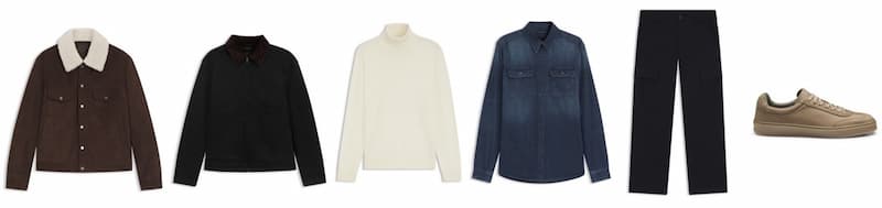 推薦單品:BECKHAM x BOSS 系列絨毛翻領裝飾紅褐色小牛麂皮夾克NT$52,900、黑色丹寧工裝外套NT$13,400、米白色喀什米爾高領針織衫NT$17,400、刷色丹寧襯衫NT$7,900、深藍色工裝長褲NT$12,400、駝色小牛皮休閒鞋NT$13,400
