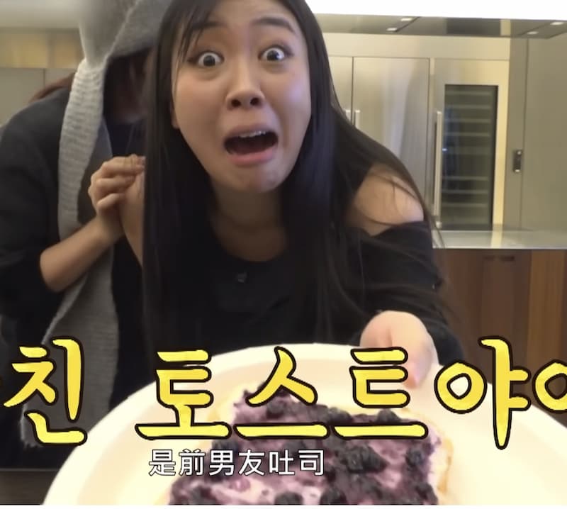 海嫄在 YouTube 綜藝《Workman》擔任一日空姐時,上工前整理儀容的片段成為經典。她突然對著鏡子用誇張又奇怪的腔調大喊「外貌 check!」這個看似平凡的動作,卻因為她獨特的語調和表情,瞬間在網路上發酵成為人人爭相模仿的熱門哏。不只粉絲們搶著學,就連 NMIXX 其他成員在直播時也忍不住模仿這個動作,讓「外貌 check」成為團內的流行語。另一邊,李泳知在《Biong Biong 地球娛樂室》節目中,面對名為「前男友吐司」的藍莓奶油乳酪吐司時,露出超傻眼的表情對著鏡頭說:「你說這個叫前男友吐司?我要打開直播問問看大家嗎?裡面沒有放前男友為什麼叫前男友吐司啊?」這段超搞笑的反應讓現場工作人員都笑瘋,前男友吐司也因此登上韓國熱搜。