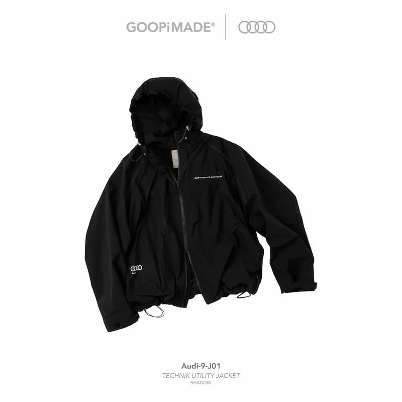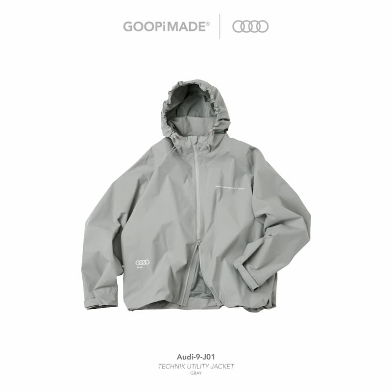 GOOPiMADE 與 Audi 的跨領域聯名,其中的聯名外套值得關注,使用了頂級布料製作,並植入獨屬於 GOOPiMADE 的輪廓與細節,且在精煉外觀的 Jacket 中融入多處可調系統,使整體穿著造型更為多變,亦能依照使用者的喜好與需求完成個人化的變體,讓其成為全場域都適應的獨特衣裝。