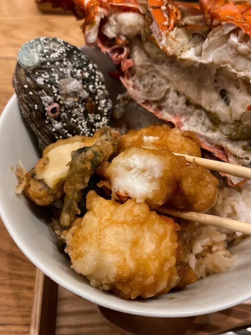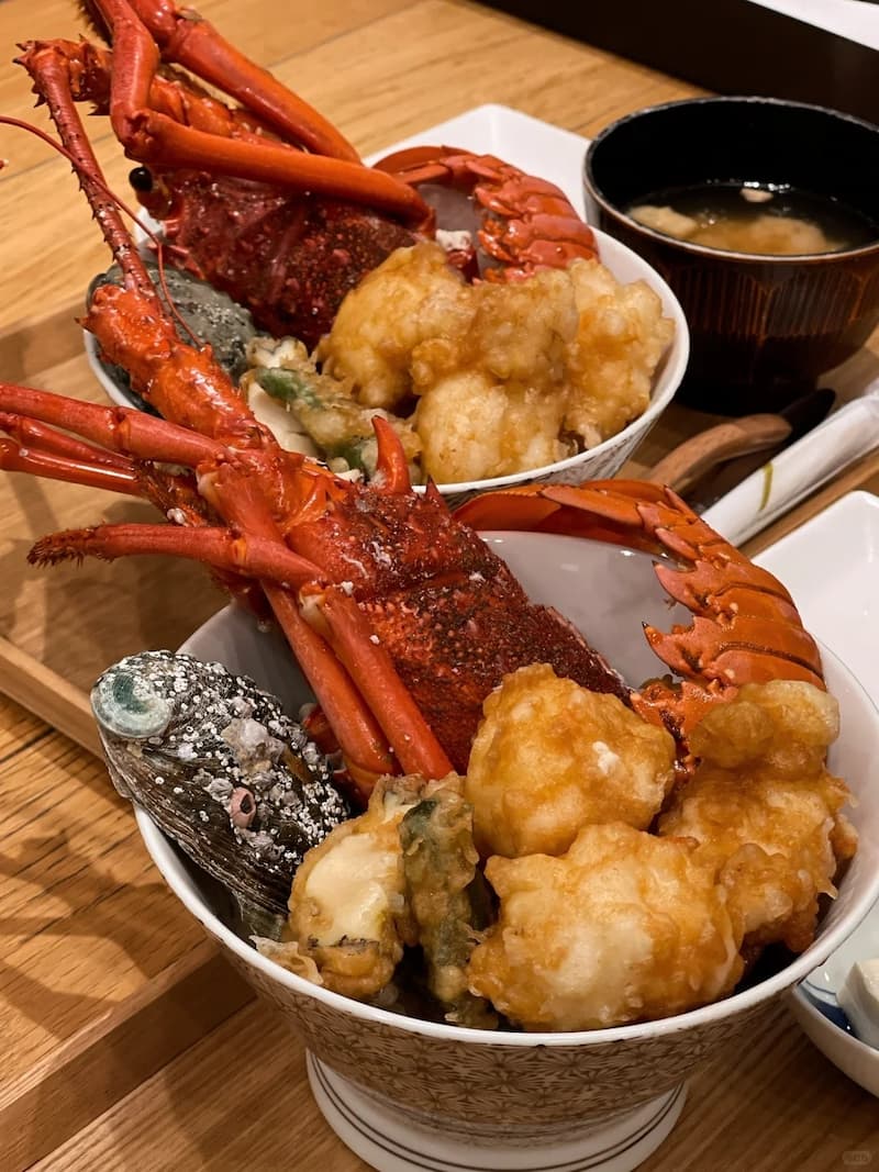 這家 かねかつ食堂 Kanekastu Shokudo 位在 福岡柳橋連合市場,Google 評分高達 4.8,走進去就能感受到滿滿海鮮新鮮感,預訂方式超簡單,直接 Walk-in 就能吃到。龍蝦肉新鮮又大塊,口感 Q 彈飽滿,搭配大鮑魚一起吃,味道更升級!價格也相當合理,一隻只要 3600 日圓,而且吃起來速度快,不會浪費太多時間。唯一小缺點就是,一隻龍蝦吃完還會覺得「不夠爽!」適合 天婦羅控、海鮮迷,或者逛完薬院 Citywalk 想大快朵頤的你,絕對不能錯過這家!