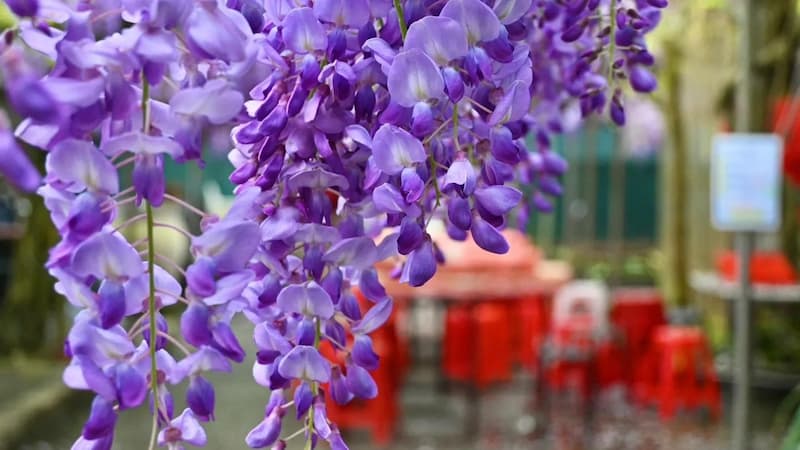 陽明山竹子湖的「頂湖小鎮」是紫藤花季必訪的賞花美食景點,設有停車場,消費滿 200 元即可抵停車費,便利又划算。餐廳外頭由綠意盎然的花棚包圍,走進去就像踏入一條靜謐的花蔭通道,假日更是座無虛席。即便不是紫藤盛開季,滿眼綠意也讓人心曠神怡;若幸運遇上盛開季節,在粉紫色花串下品嚐鮮嫩土雞,氛圍浪漫又特別。店內採自助式點餐,提供土雞、山產野菜與特色小吃,土雞肉質結實彈牙、原味鮮甜,搭配店家特調醬料更是絕配;麻油川七炒得香氣四溢,口感鮮嫩又下飯。招牌點心香芋糕鬆軟美味,淋上濃郁肉燥,入口即化;內用還會免費招待米粉湯,暖胃又暖心。食客推薦,「極推!米其林的評論員可能沒有到過這兒」、「餐廳環境相當質樸,大部分的蔬菜都是自家種植」、「114/4/3 來訪,用餐區頭上開滿紫藤花,後面有種海芋可以跟店家買海芋,很讚的地方」。