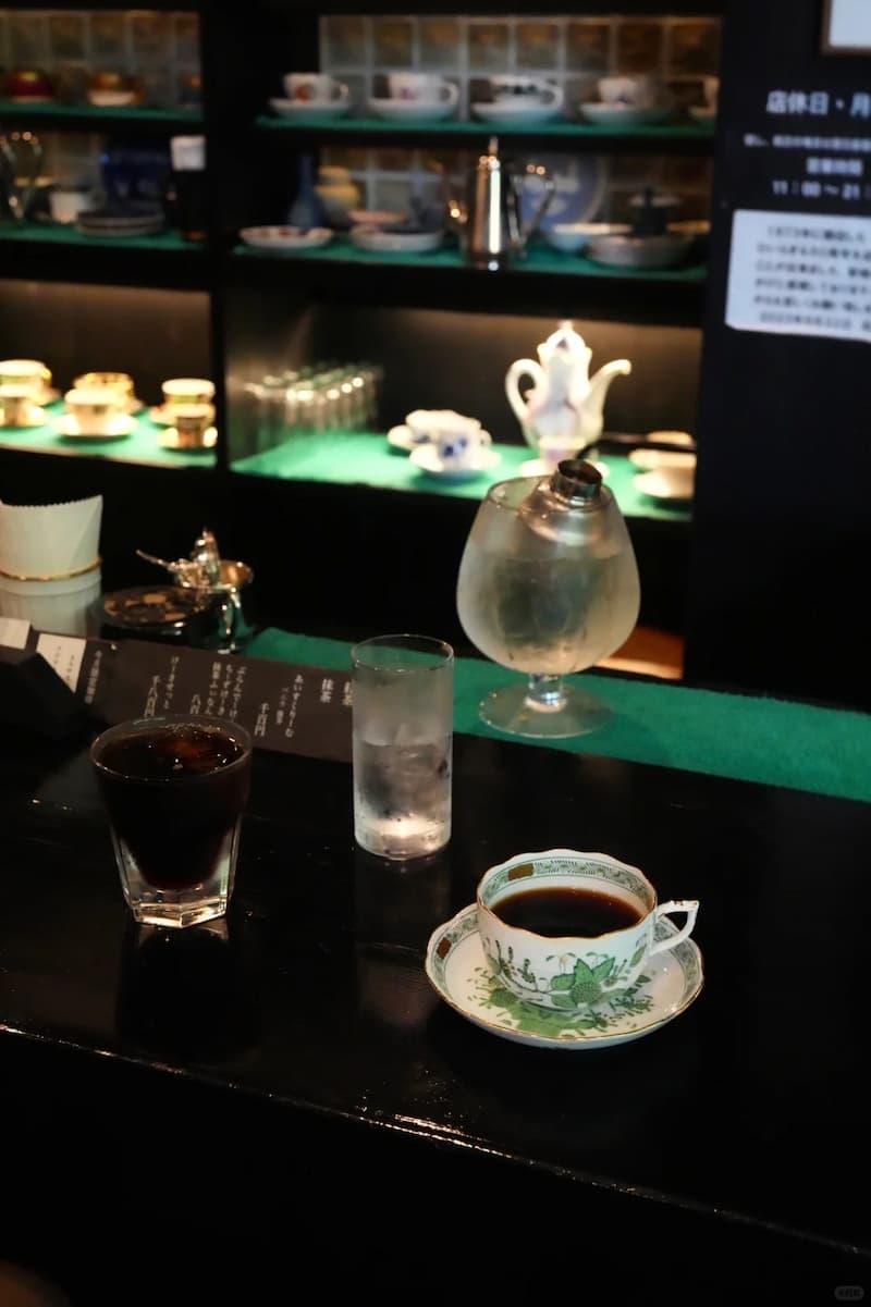 這家咖啡店外觀低調,但一推開門就會被它獨特氣場圈粉「Hiiragiひいらぎ」,福岡開了 50 餘年的老店,彷彿時間在這裡慢下來。店內以黑色木質牆面和桌面為主,帶著靜謐復古感,每個角落都散發秩序與歲月的厚度。架上陳列著來自世界各地的咖啡杯,每一只都形狀各異,幾抹綠色點綴其間,簡直美到讓人讚嘆店主的好品味,落座後,老爺爺會先告知只收現金,接著讓你隨意挑選喜歡的杯子,手沖咖啡的每個動作行雲流水,沒有一點多餘。邊聽著悠揚交響樂,邊感受整個手沖過程的儀式感,不知不覺就能待上一整個下午。每套杯子都是藝術品,挑杯子的過程本身就讓人心情滿分,再加上老爺爺的手沖魔法,這裡的每一口咖啡都帶著濃濃的情緒價值與溫度,絕對是福岡咖啡迷的私房寶地!