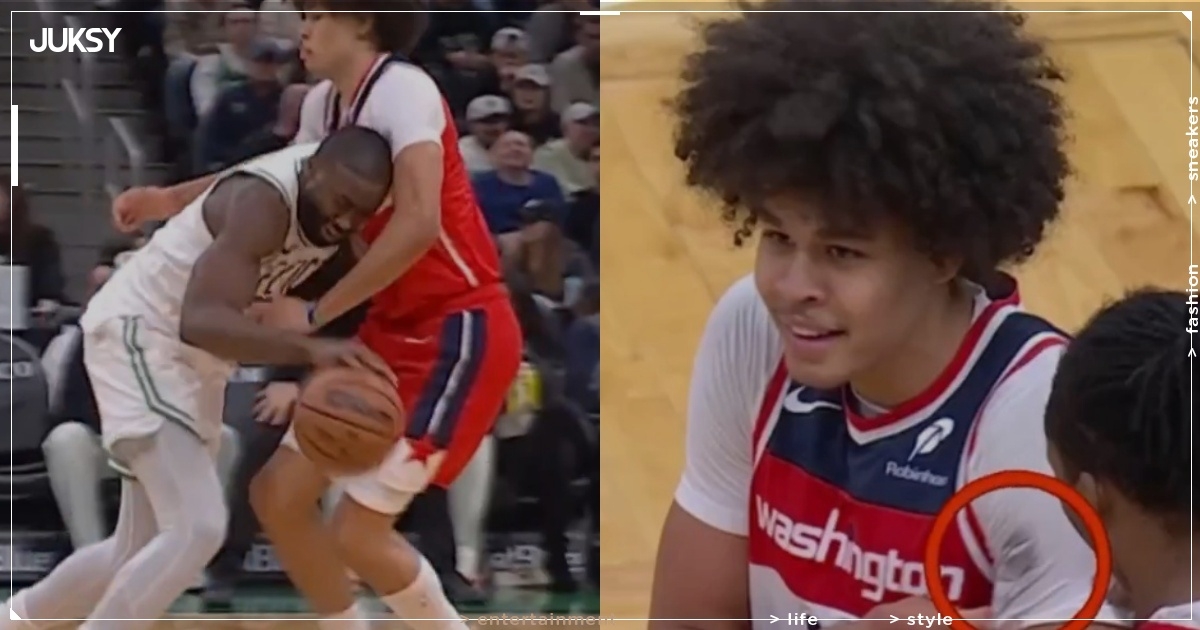 NBA 今日波士頓塞爾提克在主場以 136:107 大勝華盛頓巫師,不過比賽期間發生一件意外插曲,綠衫軍前鋒杰倫布朗(Jaylen Brown)的「頭髮」再度掉色在對手球衣身上,巫師隊年輕小將喬治(Kyshawn George)當場傻眼。