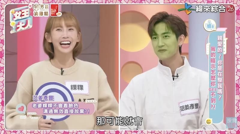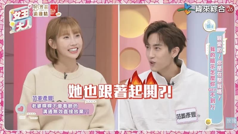 范姜彥豐與粿粿的婚變事件持續延燒,隨著男方指控妻子婚內出軌,網友們也開始挖出兩人過去在節目《女王大人》的互動片段,意外發現裂痕早有跡可循。