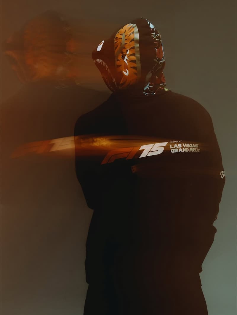 BAPE® 與 F1 的關係可追溯至 2018 年,當時雙方首度以「概念賽車塗裝」的形式合作,為 BAPE® 25 週年打造出一輛覆滿迷彩塗層的 F1 賽車,象徵速度與街頭文化的結合。(詳細資訊可點此)隔年 2019 年,雙方正式推出首個 BAPE® × Formula 1 聯名系列,包含外套、T-shirt、帽款與配件,並於同年稍後延伸出第二波款式,當時的紅黑白迷彩主題迅速成為收藏級話題。隨後的 2020 至 2024 年間,兩者雖無公開聯名系列,但 BAPE® 與賽車、運動及奢華文化之間的連結持續深化。直到 2025 年,雙方終於再次回歸合作舞台,以拉斯維加斯為背景,開啟全新篇章。