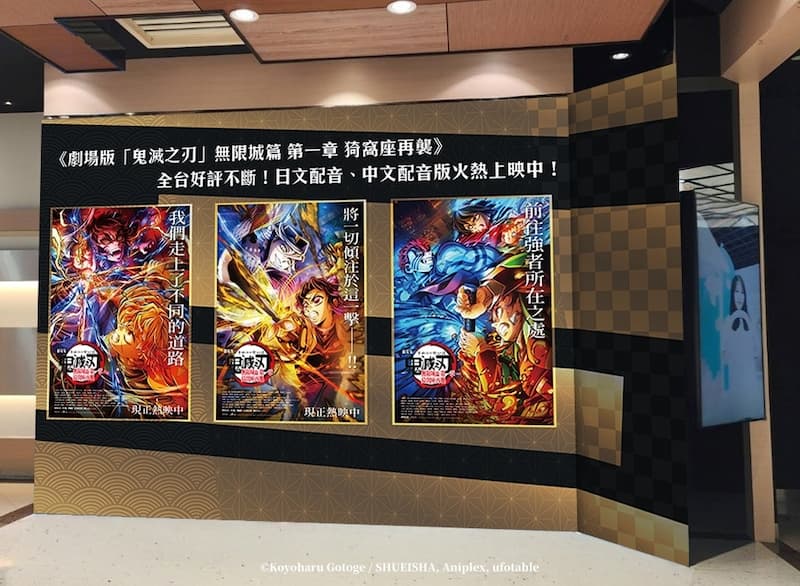 入口通道上,更規劃了《劇場版「鬼滅之刃」無限城篇 第一章 猗窩座再襲》最經典三場戰役的最新視覺圖。「炭治郎、水柱冨岡義勇vs.猗窩座」、「蟲柱胡蝶忍vs童磨」、「善逸vs.獪岳」這三張極富魄力與戰鬥感的視覺圖,先前一公開就獲得眾多粉絲喜愛,這次在高雄夢時代一次集結,希望透過畫面讓到場粉絲重溫電影中動人的時刻。