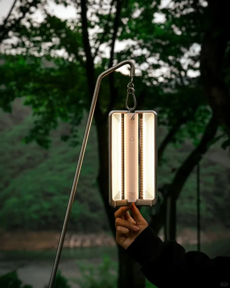 照明可採「主燈+輔助燈」配置,主燈(高亮度露營燈)掛在天幕下;輔助燈(如頭燈)則方便你半夜上廁所時解放雙手。電力方面,務必攜帶大容量行動電源和一條戶外動力延長線,確保你的手機永遠有電,用電更彈性安全。