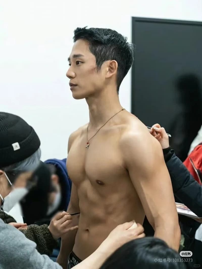 「國民年下男」丁海寅曾在劇集《媽媽朋友的兒子》因帥氣臉蛋與精壯身材引發討論。劇中他飾演游泳選手,肌肉線條結實明顯,連孫藝珍也曾大讚他的「石頭般」好身材,讓觀眾與粉絲印象深刻。這部作品幾乎就像展現丁海寅的日常魅力,集帥氣臉蛋與健身成果於一身。寬肩、結實手臂與緊實核心讓他在鏡頭前展現出令人難以忽視的陽剛魅力。