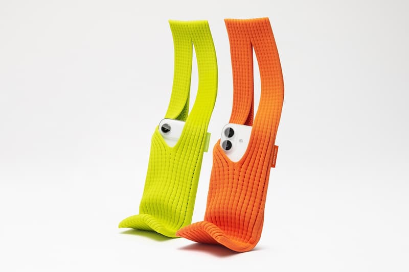 「iPhone Pocket」的布料結構延伸自 ISSEY MIYAKE 代表性的褶皺工藝,以開放式羅紋針織呈現柔軟與彈性兼具的質感。它的誕生靈感來自「為日常穿搭再添一個口袋」的想法,簡約卻富有韻味的設計能完整包覆 iPhone,並隨著內容物的大小自然延展。當布料被拉開時,半透明的編織會隱約顯露內部的物件與 iPhone 螢幕的光線。使用者可自由選擇不同佩戴方式,像是手拿、綁於包袋、或直接掛在身上,都能展現各自的生活風格。
