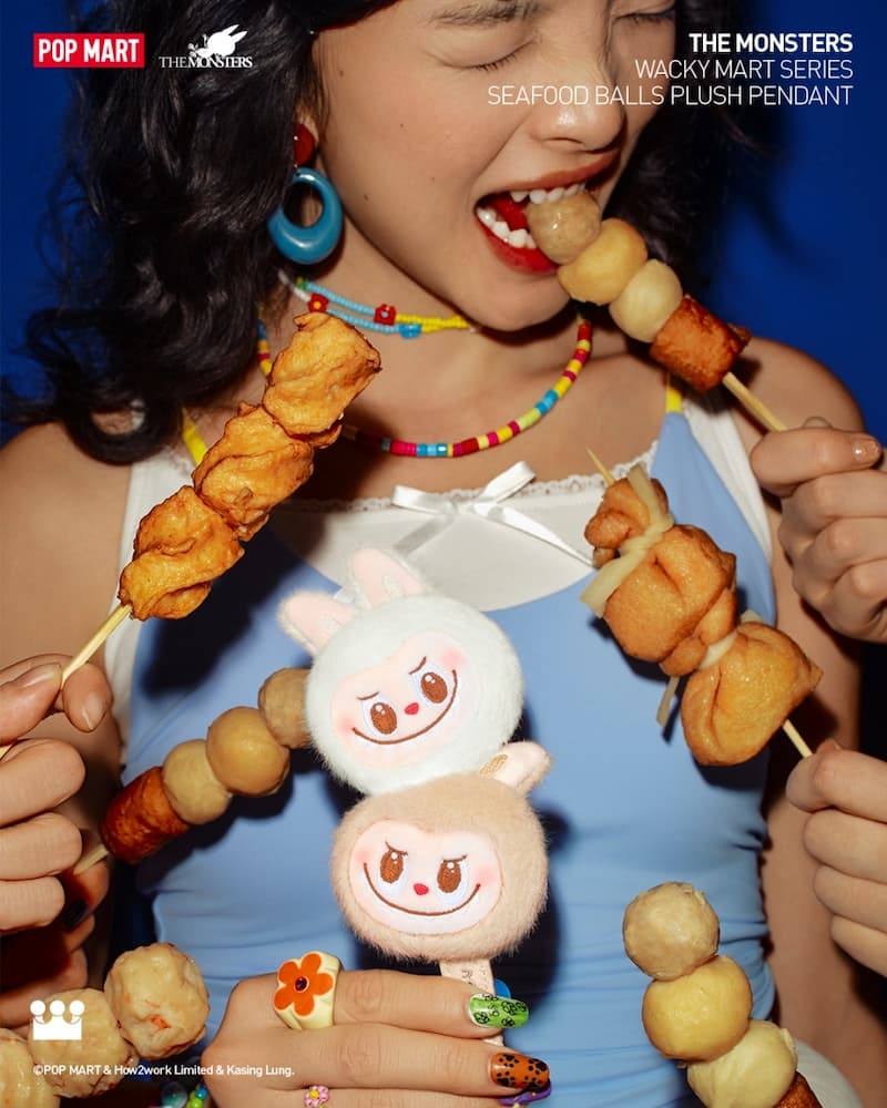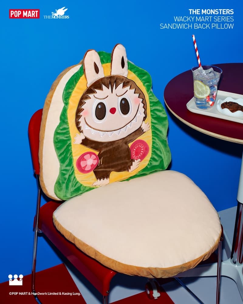 繼「THE MONSTERS 怪味便利店系列」推出後掀起熱潮,POP MART 此次也帶來此系列的多款台灣首發與展會獨賣新品,讓超萌小怪獸化身各式趣味零食造型。化作夾心三明治的「三明治小包」,外觀小巧可愛兼具實用性,售價 620 元;放大可愛比例的「三明治靠枕」將立體吐司內層夾入生菜與番茄,為居家空間增添療癒氛圍,售價 1,320 元;「泡麵公仔收納包」以蘑菇口味及海鮮口味兩款登場,杯麵裡探出頭的 LABUBU 可愛又搶眼,售價 770 元;「海鮮丸子串毛絨掛件」則將雙色圓滾滾大頭串成一串,重現街頭小吃海鮮丸子串的俏皮意象,售價 280 元;擁有多色且收納便利的「魚籽福袋收纳包盲盒」,Q 萌圓臉造型搭配立體耳朵及抽繩設計,現場僅販售一中盒,每人限購一中盒,售價 2,220 元。