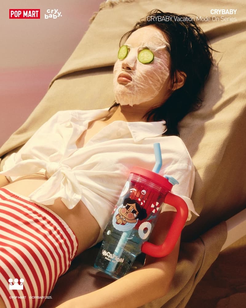 「掛件盲盒」以繽紛泳圈搭配多款度假造型,透明環身內藏可愛配色小珠,現場僅販售一中盒,每人限購一中盒,售價 1,680 元;「吸管杯」則延續系列的假日風格,採透明杯身結合鮮豔紅藍配色,印上 CRYBABY 經典表情與泳圈圖案,無論在辦公室、通勤或出遊時都能感受滿滿假期氣息,售價 620 元。粉絲們務必把握難得機會前往選購,一次將整個系列豪邁帶回家!
